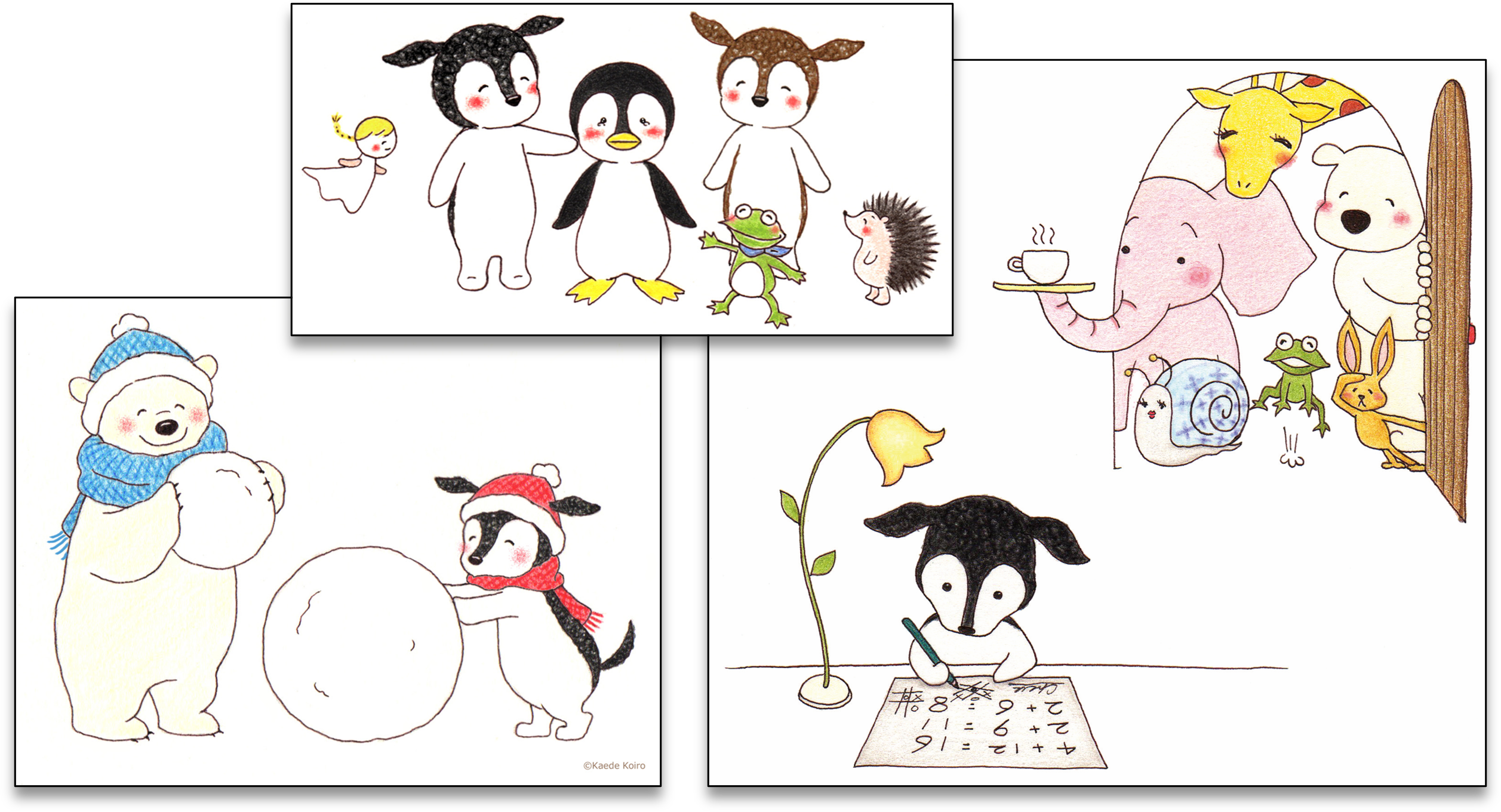 友達は動物がほとんどですが、 風船などの物を擬人化した仲間もおり、チェスくんは誰に 対しても優しく接します。誰からも愛される心優しいキャラクターです。